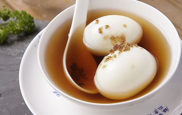用油炸花生米,核桃仁、黃豆、米泡、苞谷泡等,打上三四個雞蛋,放入煮開的油茶內,味道鮮花,具山村風味。